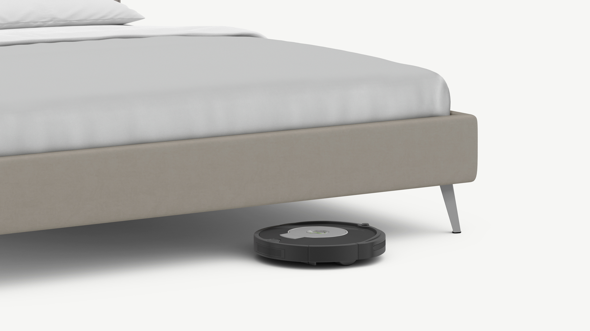 Высокие металлические опоры наклонной формы создают над полом достаточный просвет для движения робота-пылесоса, что помогает поддерживать чистоту и порядок в доме.