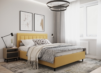 Стежка помещена в центр изголовья и обрамлена, словно картина. Объемные царги завершают цельную фигуру кровати и становятся гармоничным дополнением ее образа.