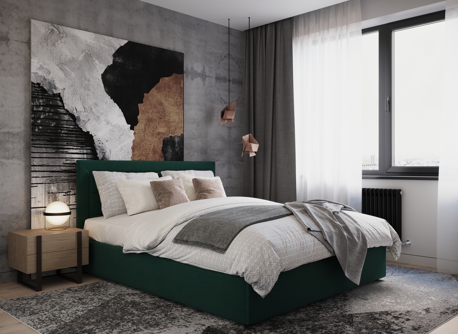 Стежка помещена в центр изголовья и обрамлена, словно картина. Объемные царги становятся гармоничным дополнением образа и завершают цельную фигуру кровати.