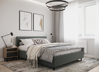 Фактура обивочного материала подбирается дизайнерами с учетом технологических и стилевых особенностей кровати.
