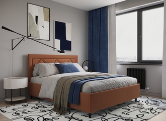 Фактура обивочного материала подбирается дизайнерами с учетом технологических и стилевых особенностей кровати.