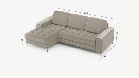 Секция «канапе» обеспечивает дополнительное пространство для отдыха, благодаря которому Вы можете располагаться с максимальным комфортом, удобно вытянув ноги. Под данной секцией расположен вместительный бельевой короб.