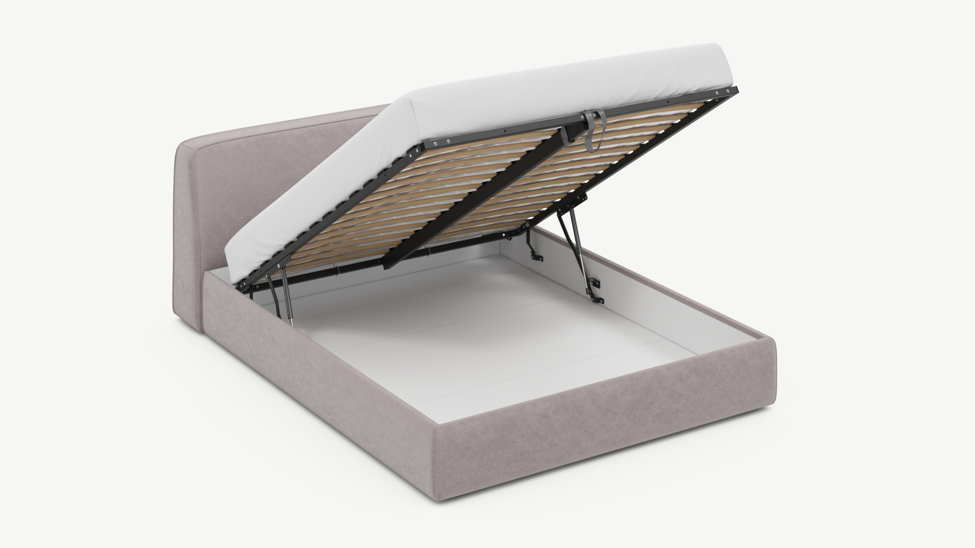 • Скрытая под основанием вместительная емкость без внутренних перегородок позволяет использовать всю площадь подкроватного пространства для хранения вещей.